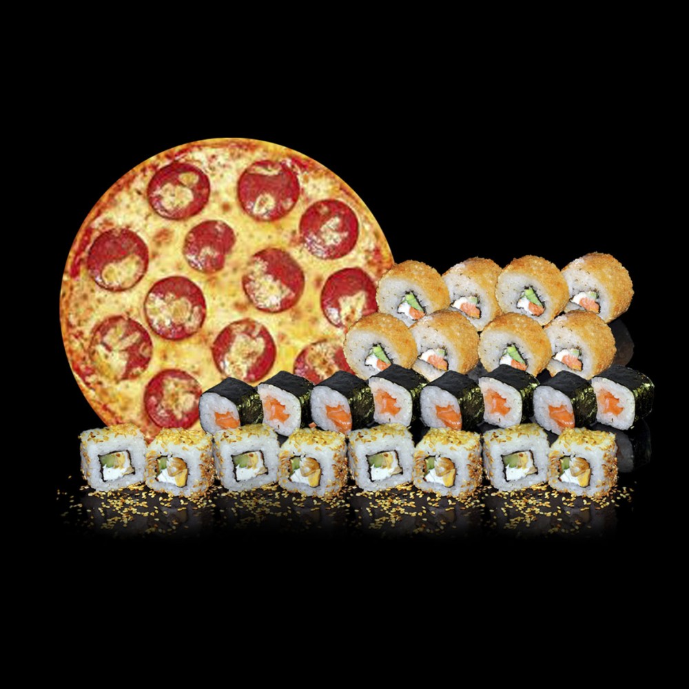 Микс голд 8шт Сяке мак 8шт Кунжут 8 шт Пицца Халал( Пеперони)30см