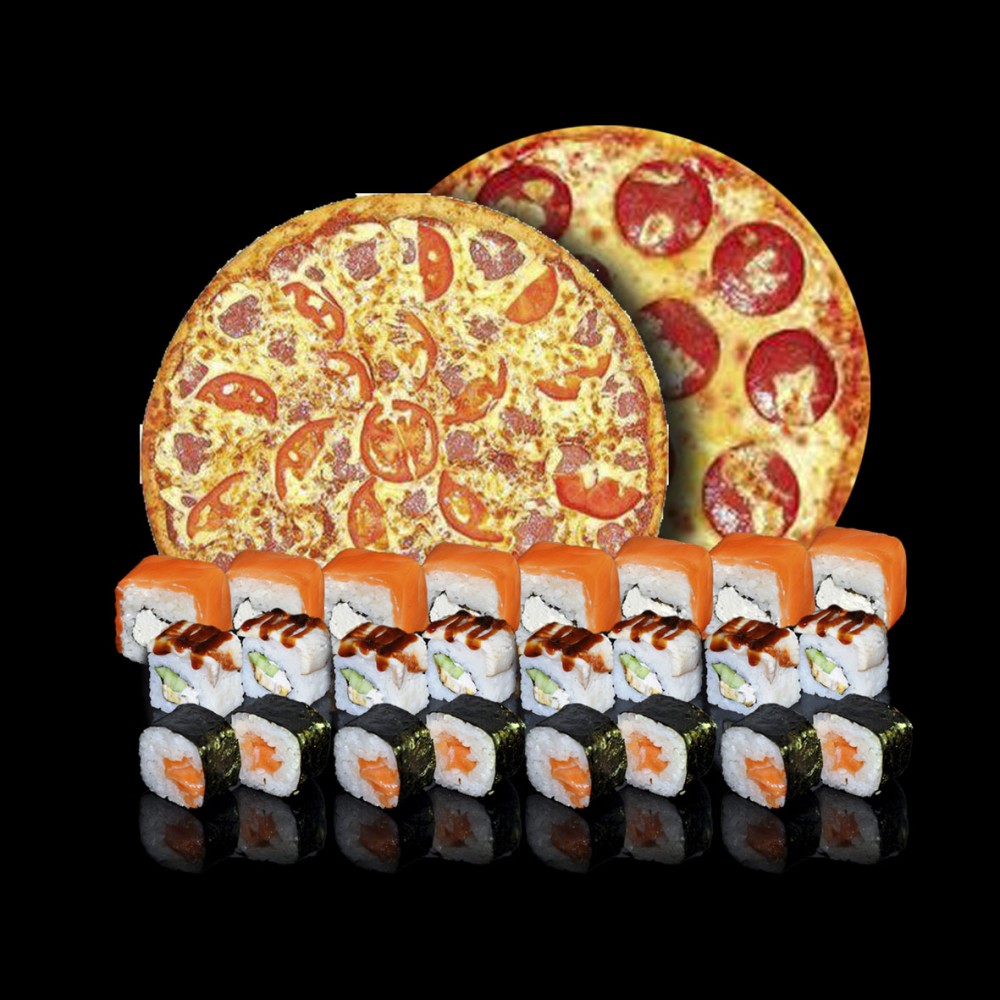 Пицца Халал (Пеперони ) 30см Пицца Маргарита 30см Филадельфия 8шт Миф 8шт Сяке мак 8шт