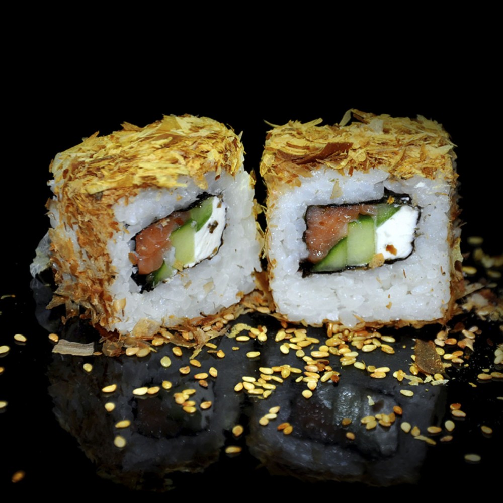 Стружка тунца, лосось , сыр, огурцы, особый рис