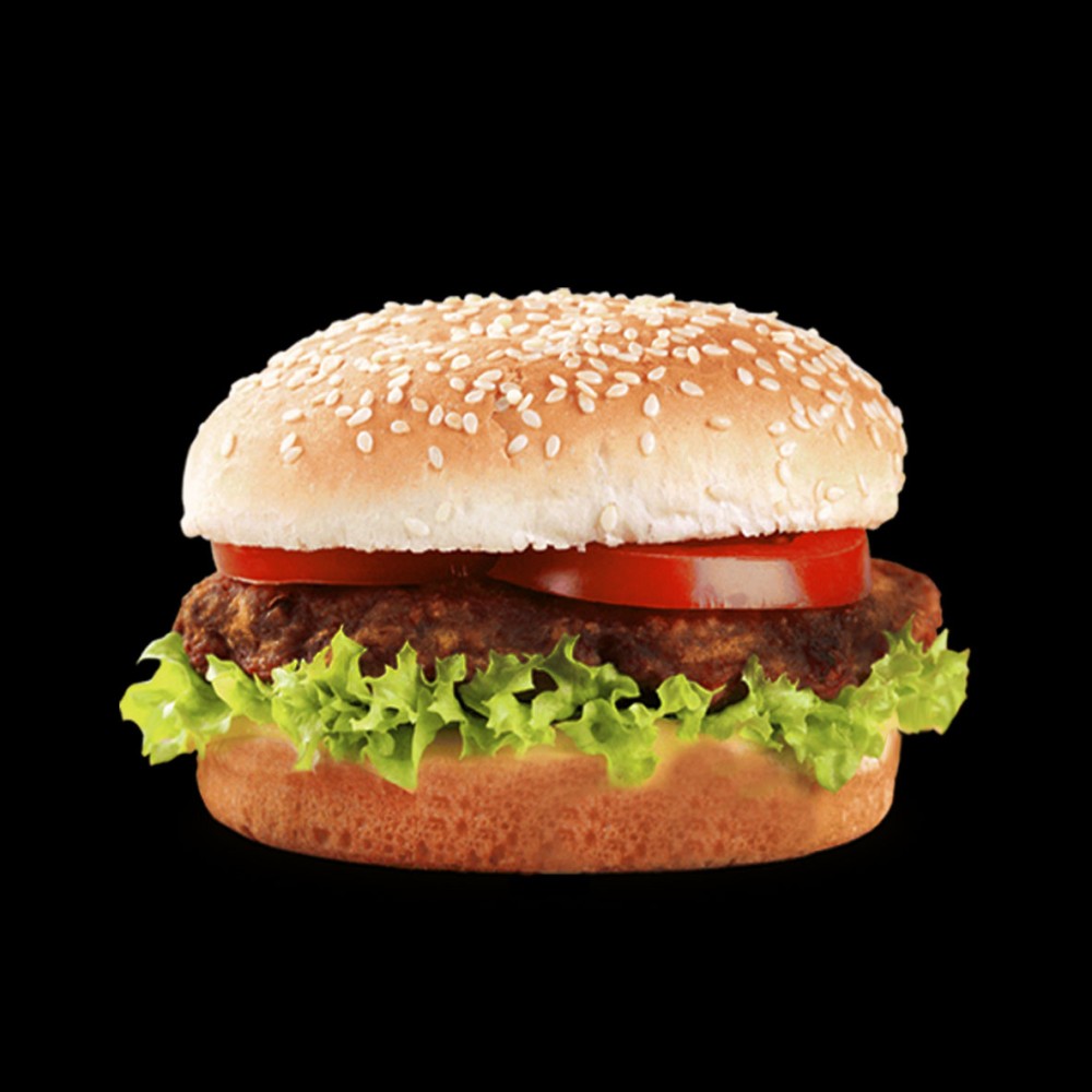 Булочки, говяжий котлет, салат листья, помидор, лук, фирменный соус