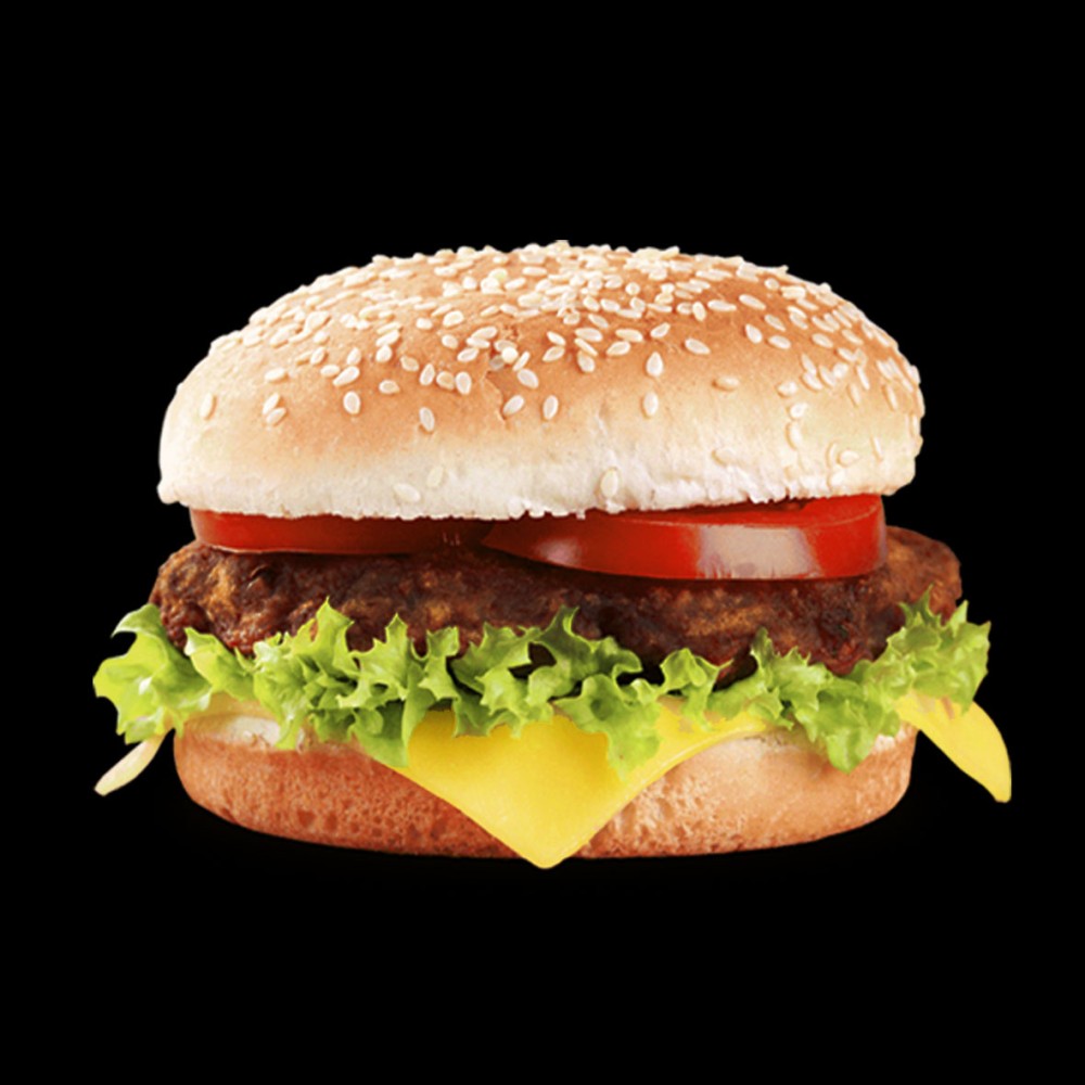 Булочки, говяжий котлет, салат листья, помидор, лук, фирменный соус , сыр чизбургер