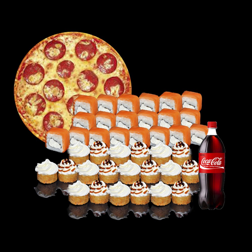 Филадельфия 20шт Сяке голд 20шт Пицца Халал ( Пеперони )30см 2 л кола