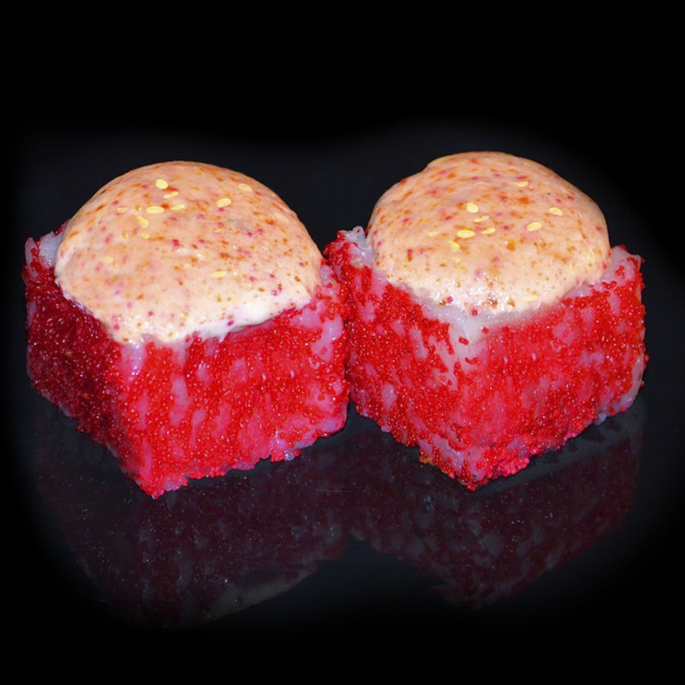 Тобико, крабовый палочки , сыр, фирменный соус, особый рис