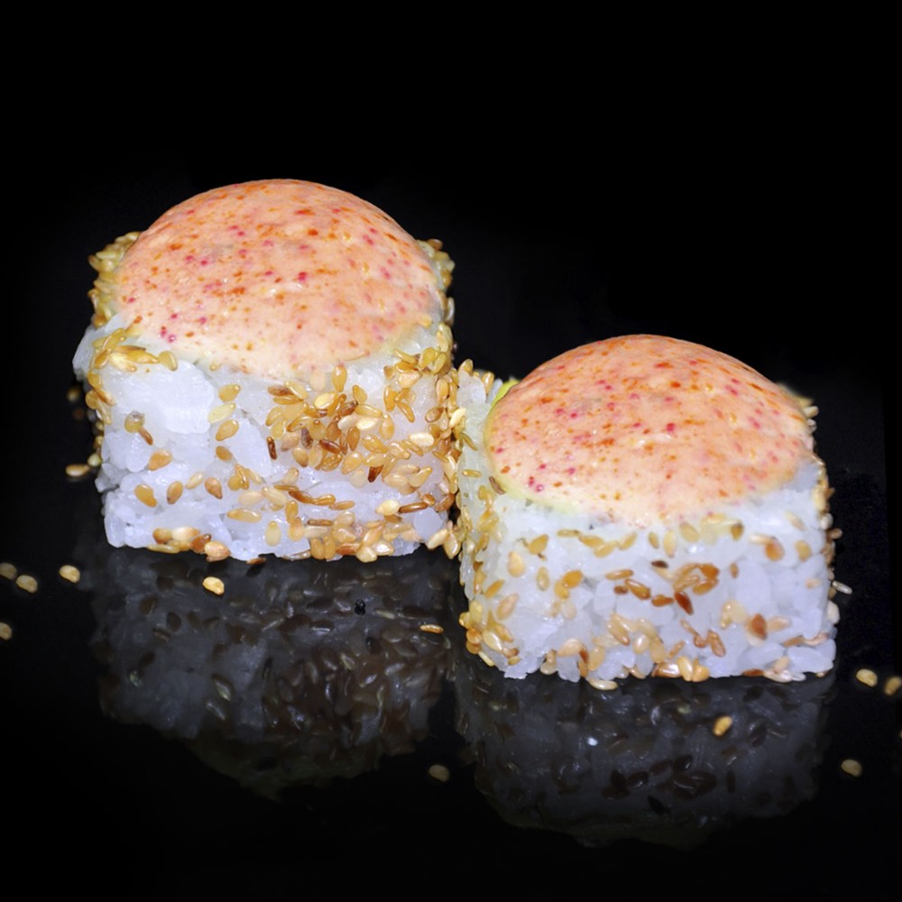 Лосось, кунжут, сыр, огурцы, особый рис, фирменный соус